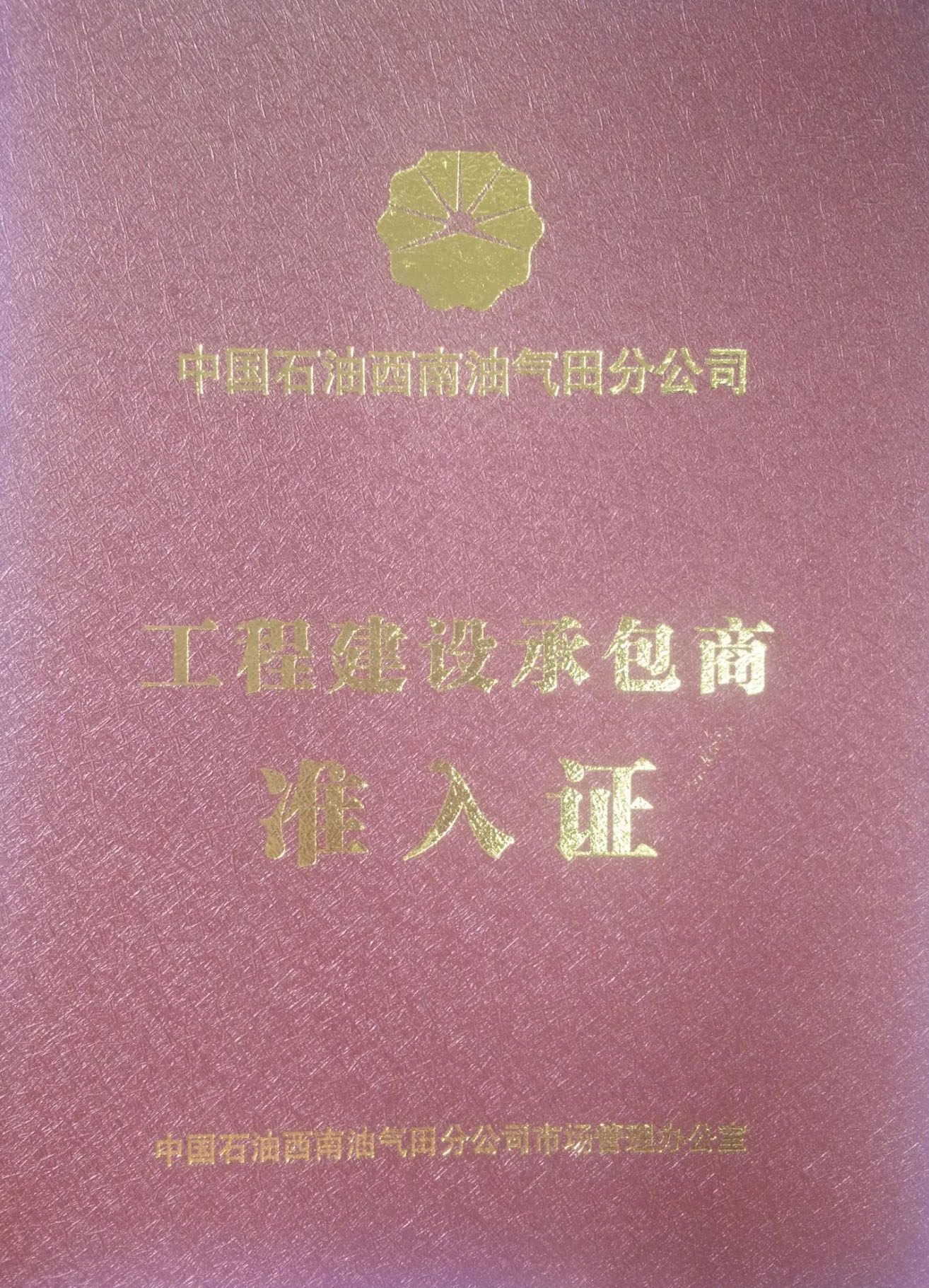 中国石油天然气集团公司工程建设承包商准入证证书